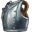 体の正面を守る頑丈な胸当て。ポールアームの先が滑って高貴な首に刺さらないよう、細いバーがついている。鍛え抜かれた金属の板を加工しており、馬に乗った騎士の槍を真正面から受けても耐えられる強度を誇る-
